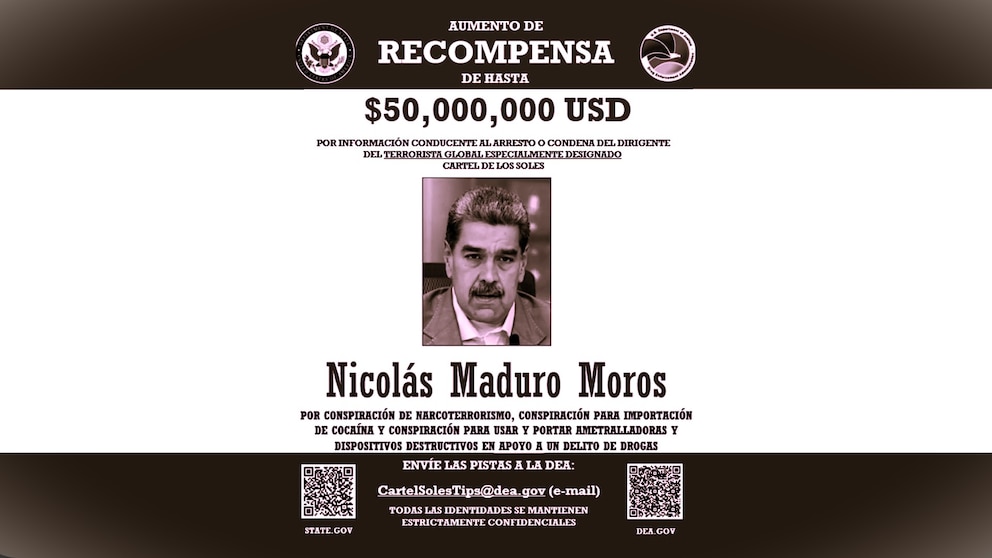 Pocos días después, el 7 de agosto, los Estados Unidos anunciaron que elevaban la recompensa para aquel que aportara información que pudiera dar con Maduro hasta un valor récord: 50 millones de dólares. La cifra representa bastante más de lo que alguna vez la Casa Blanca ofreció por Osama Bin Laden, enemigo número uno y el autor intelectual del ataque a las Torres Gemelas el 11 de septiembre de 2001.