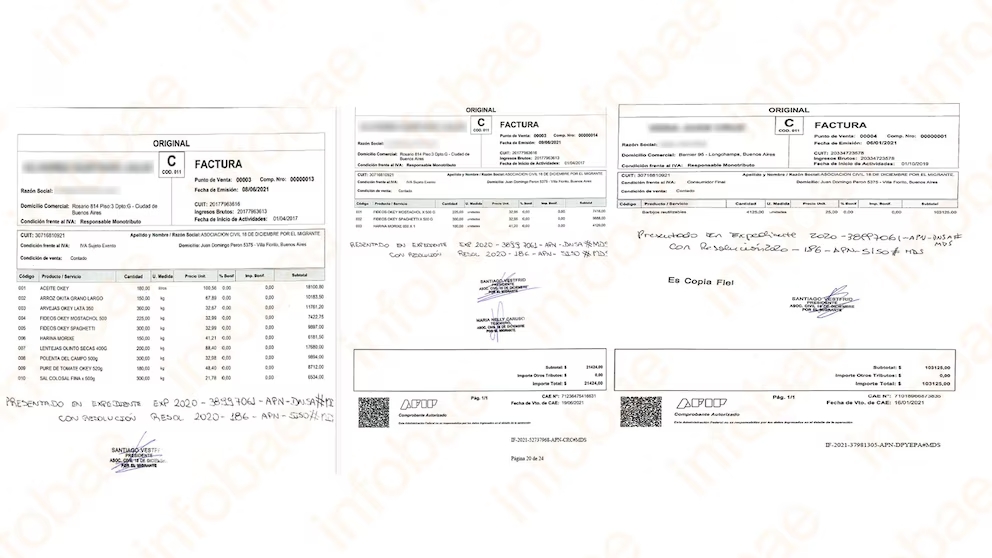 La investigación sobre el uso del dinero público que se entregaba a los comedores populares sigue detectando irregularidades. En la rendición de cuentas de la “Asociación Civil 18 de Diciembre por el Inmigrante” apareció una factura por la compra de barbijos. Fue emitida el 6 de enero de 2021 por una persona que figura como empleado de la Municipalidad de San Vicente. No es todo. La factura encontrada era la número 1 y la persona apuntada se había inscripto al monotributo apenas tres meses antes.