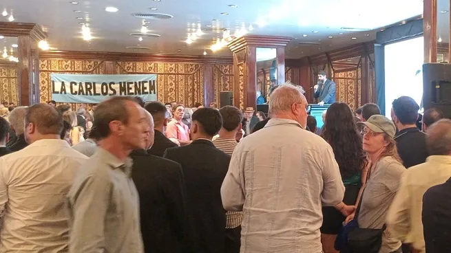 La ceremonia se realizó en un abarrotado salón de un hotel ubicado en las avenidas 9 de Julio y Córdoba, con las presencias de algunos referentes del menemismo como Alberto Kohan, quien circulaba con bastón, y de La libertad Avanza, como el senador provincial Sebastián Pareja, señalado como “padrino” de La Carlos Menem y uno de los oradores de la ceremonia.