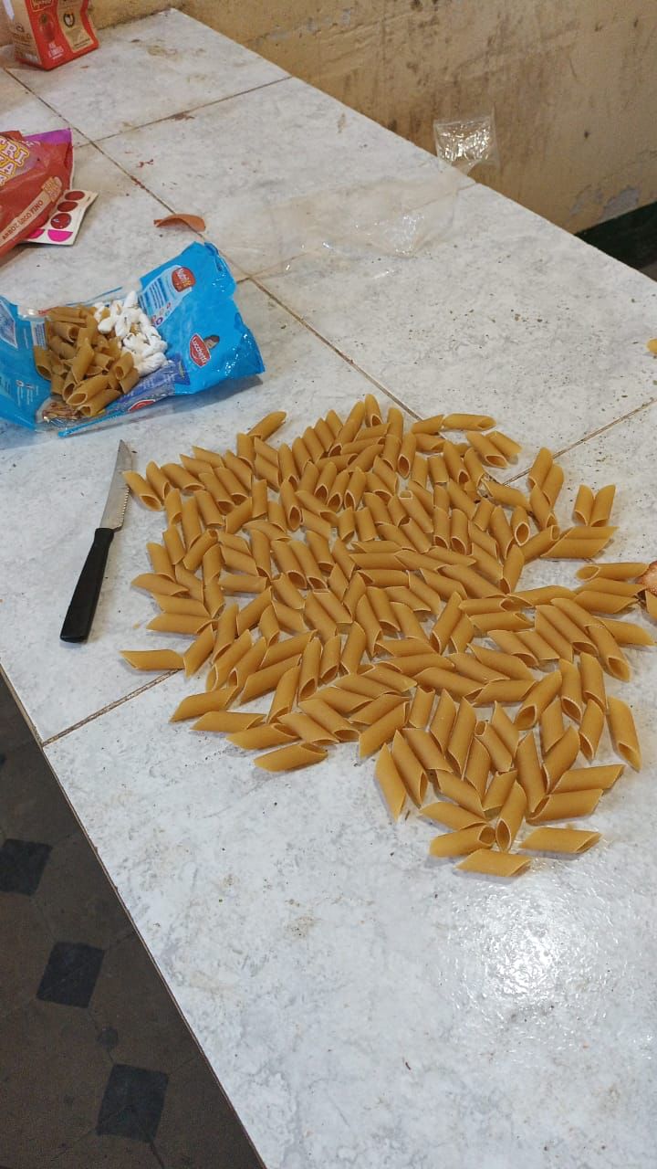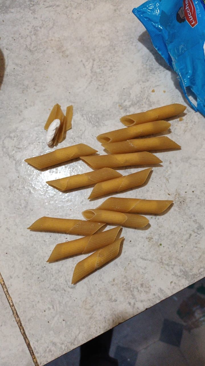 Los agentes penitenciarios suelen hallar material estupefaciente entre las plantillas y las suelas de las zapatillas, en pañales descartables, en fideos tipo mostacholes (foto), en biscochos y prepizzas (foto) y hasta en masitas tipo “pepas”.
