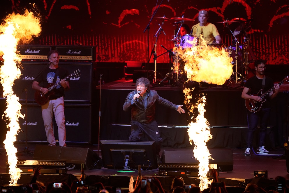 La vida pública en la Argentina empieza a parecerse de a ratos a una distopía. Ayer, mientras el ministro Luis Caputo negociaba en Washington el apoyo financiero al programa económico con el secretario del Tesoro y la titular del Fondo Monetario, el presidente Javier Milei dedicó el día entero a los preparativos del show musical que encabezó anoche en el Movistar Arena, que incluyó una variada grilla de temas del rock nacional, previo al discurso con el que cerró un espectáculo a todas luces extravagante.