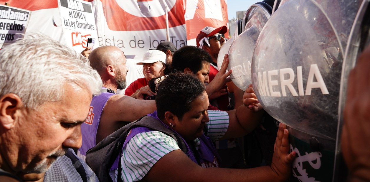 Empujones, golpes, cortes de calle, gases lacrimógenos y detenidos. Afuera del Congreso hubo incidentes y tensión extrema entre las fuerzas de seguridad y manifestantes, mientras la Cámara de Diputados avanzaba con el primer día de debate de la Ley Ómnibus. Hubo detenidos.