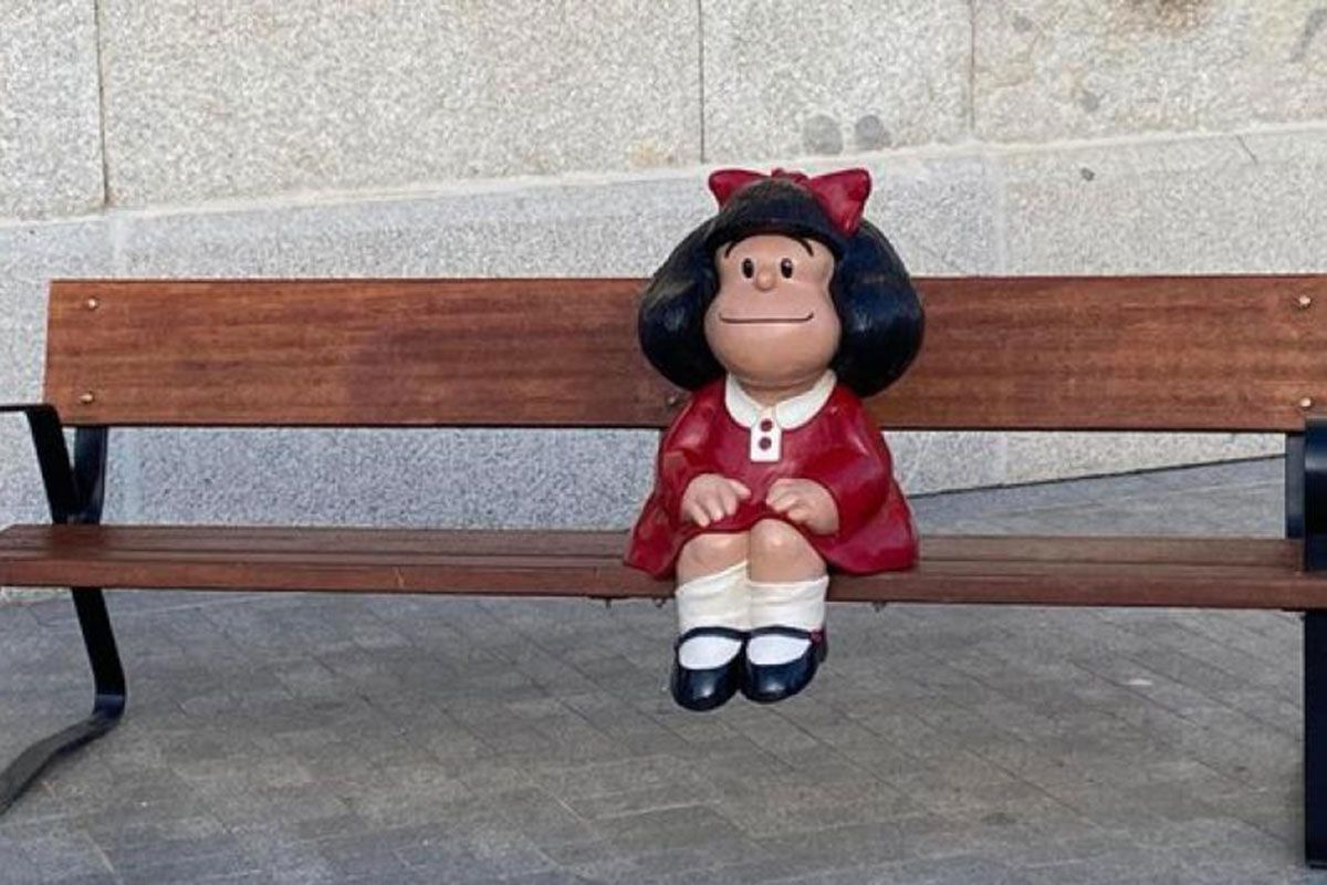 Esta escultura de Mafalda, que aparece en un banco de madera y con vestido rojo, es la décimo segunda emplazada en el mundo y la tercera en España. Las otras dos se encuentran Oviedo y Barcelona respectivamente.