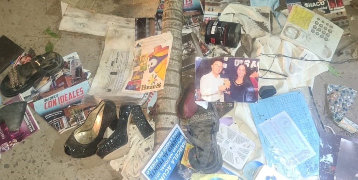 Y agregó: “Hay varias fotos de la pareja y varias prendas de vestir de mujer. Con telas y colores brillosos y llamativos. Hay también pares de zapatos femeninos. Además, se encontraron algunos folios con la libreta escolar de César Sena y varios papeles vinculados al movimiento político de la familia”.