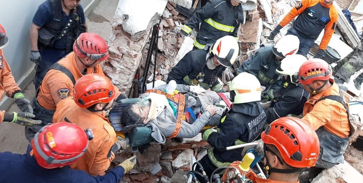 El trabajo para sacar a Lautaro de los escombros demoró cuatro horas. Recién a las 17.05 fue retirado en una camilla, atendido por personal del SAME y derivado al mismo centro médico.
