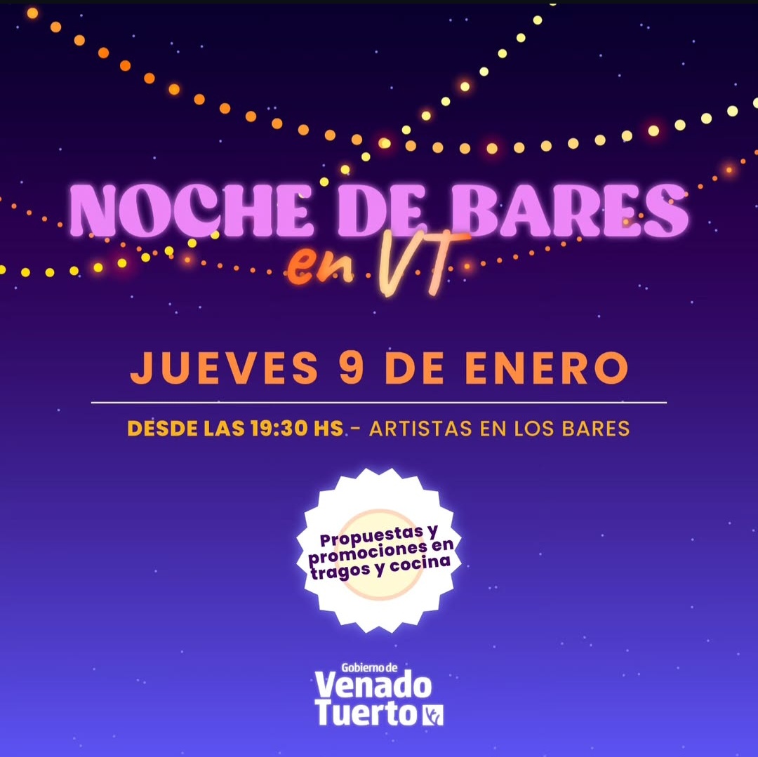 ➡️ Este jueves 9 de enero el Gobierno de Venado Tuerto ofrecerá una nueva edición de la “Noche de Bares”, de la que participarán siete espacios gastronómicos de la ciudad ⬅️